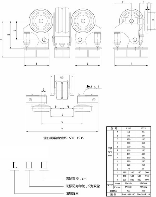 聚胺脂橡膠滾輪罐耳裝置(簡稱滾輪罐耳),是參考多年來各礦井使用滾輪罐耳的形式,廣泛吸取用戶的使用意見改進(jìn)而成。可根據(jù)用戶的使用條件和要求,可采用橡膠緩沖、彈簧緩沖、碟簧緩沖、液壓緩沖、復(fù)合緩沖。其使用壽命長、安全可靠性高、維護(hù)方便等特點。